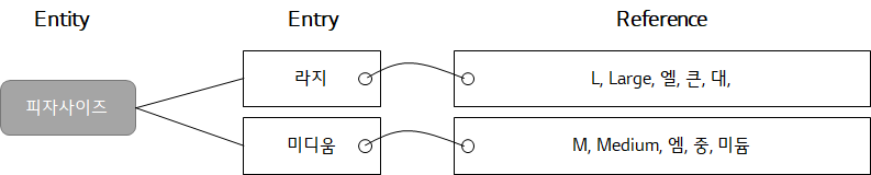 Entity는 특정 정보를 대표하는 대표어(Entry)와 그 대표어로 인식될 수 있는 유사 표현들(Reference 또는 Synonym)로 구성됩니다.