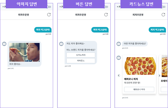 따라하기를 마치면, 실습환경 플랫폼과 테스트 메신저에서 다음과 같은 화면 결과를 얻으실 수 있습니다.