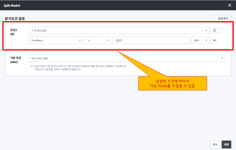 Split Node는 이런 상황에서 조건에 따라 대화 흐름을 분기하도록 처리해 줍니다.