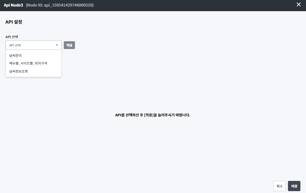 등록된 API는 Chatflow 설계의 API 노드에서 조회 및 사용 가능 합니다.
