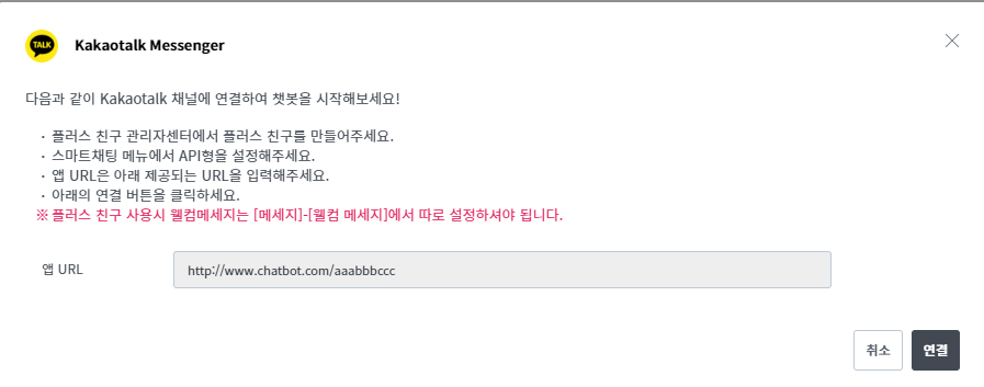 Note: Kakaotalk 연계에 대한 더 자세한 내용은 Kakaotalk 페이지에서 확인해 주세요.