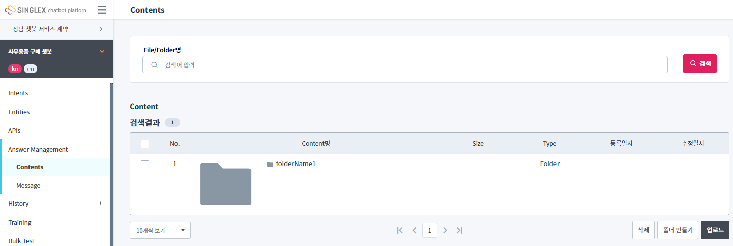 폴더가 성공적으로 생성되면 Contents 목록에서 생성된 폴더를 확인할 수 있습니다. 폴더명을 클릭하면 해당 경로로 이동합니다.