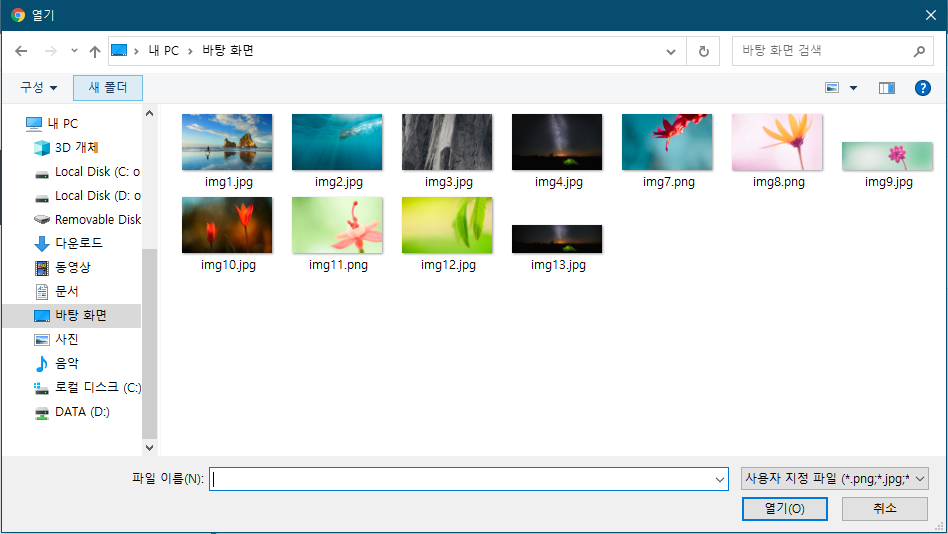 원하는 폴더 경로에서 이미지 파일을 업로드 할 수 있습니다.