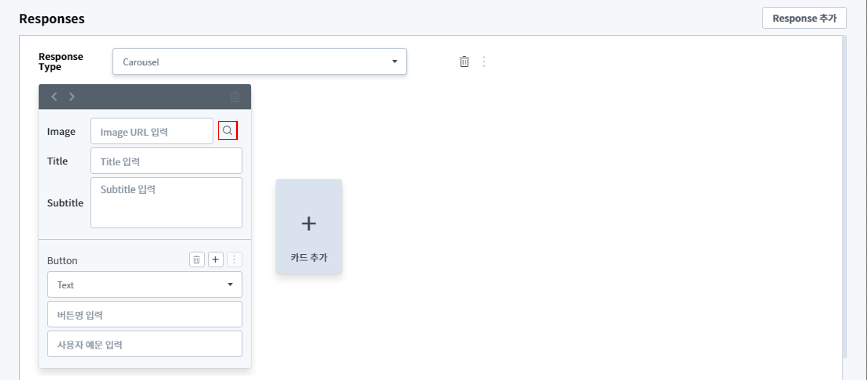 Chatflow의 Speak Node 답변 설정 화면에서 Image URL을 직접 입력하는 대신 돋보기 아이콘을 클릭하면 Contents에 업로드 된 파일을 선택하여 URL을 불러올 수 있습니다.