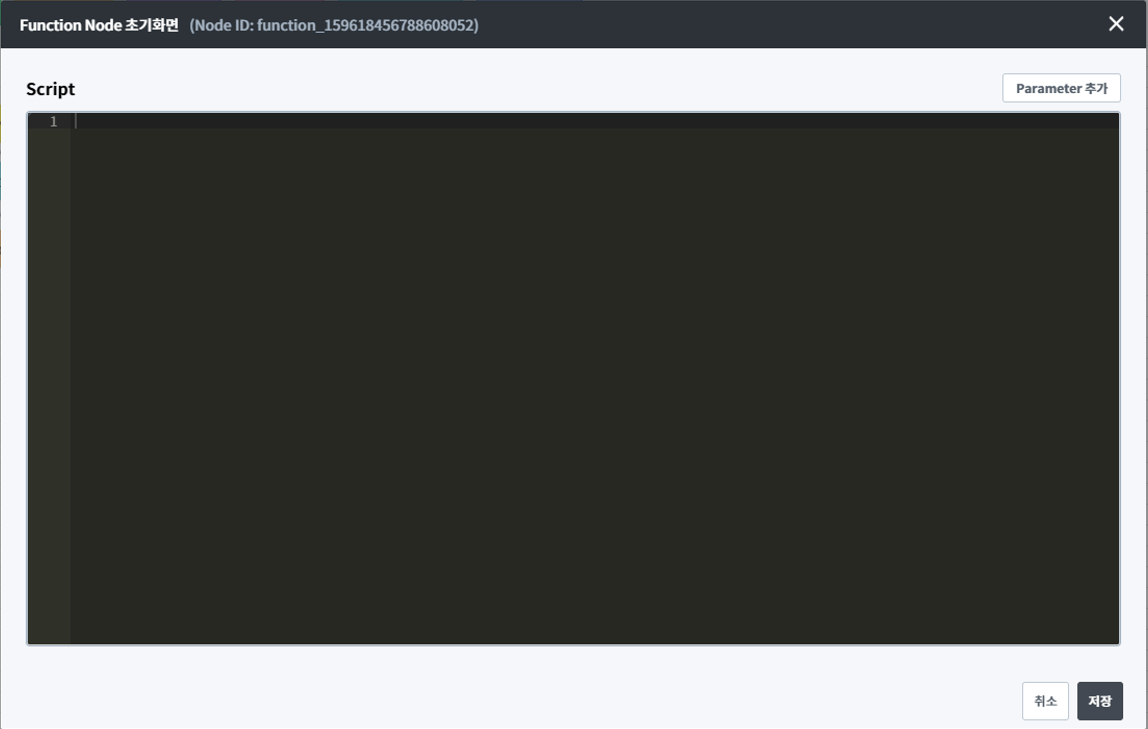 Function Node란 Javascript를 작성하여 실행시킬 수 있는 Node 입니다. Function Node의 사용은 필수가 아니지만 다양한 방식의 데이터 처리의 가능성을 열어두기 위해 제공하고 있습니다. 개발자들를 위한 Node라고도 볼 수 있습니다.