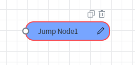 Jump Node란 서로 다른 답변을 연결해주는 Node 입니다. 즉, 다른 Intent의 답변을 연결하여 자연스럽게 대화가 넘어가도록 하거나 공통으로 사용되는 답변을 연결할 수 있도록 지원합니다. Jump Node를 사용하면 현재의 대화 흐름에서 벗어나기 때문에 Jump Node 우측에는 다른 Node와 연결 가능한 Circle(연결점)이 존재하지 않음을 확인할 수 있습니다.
