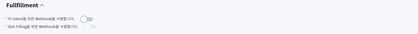 각 Intent에는 Fulfillment를 사용하기 위한 설정이 있습니다. Intent에 시스템 작업 또는 동적 응답이 필요한 경우 Intent에 대해 Fulfillment를 사용 설정해야 합니다. Fulfillment가 사용 설정되지 않은 Intent가 일치하는 경우 Dialogflow는 Intent에 대해 정의된 정적 응답을 사용합니다.