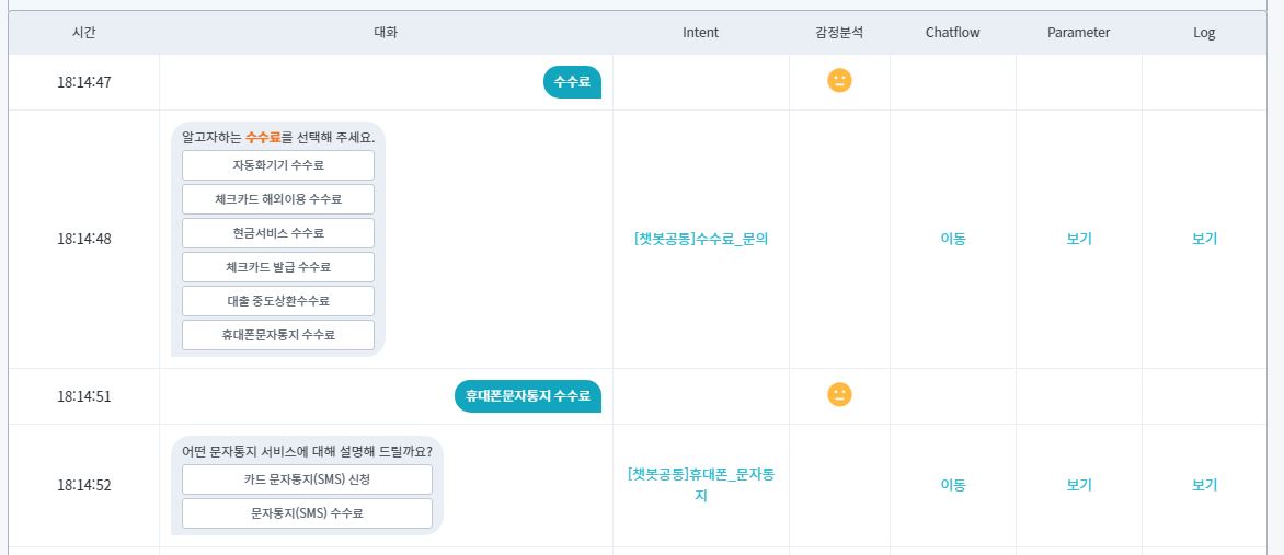 | 대화 | 사용자가 입력한 발화와 챗봇의 응답 내용입니다. |