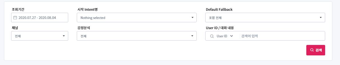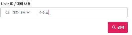 User ID/대화 내용 : User ID와 대화 내용은 텍스트 입력을 통해 검색할 수 있습니다. User ID는 입력값과 동일한 값을 가진 대화를 조회하고, 대화 내용은 입력값을 포함하고 있는 대화를 조회합니다.